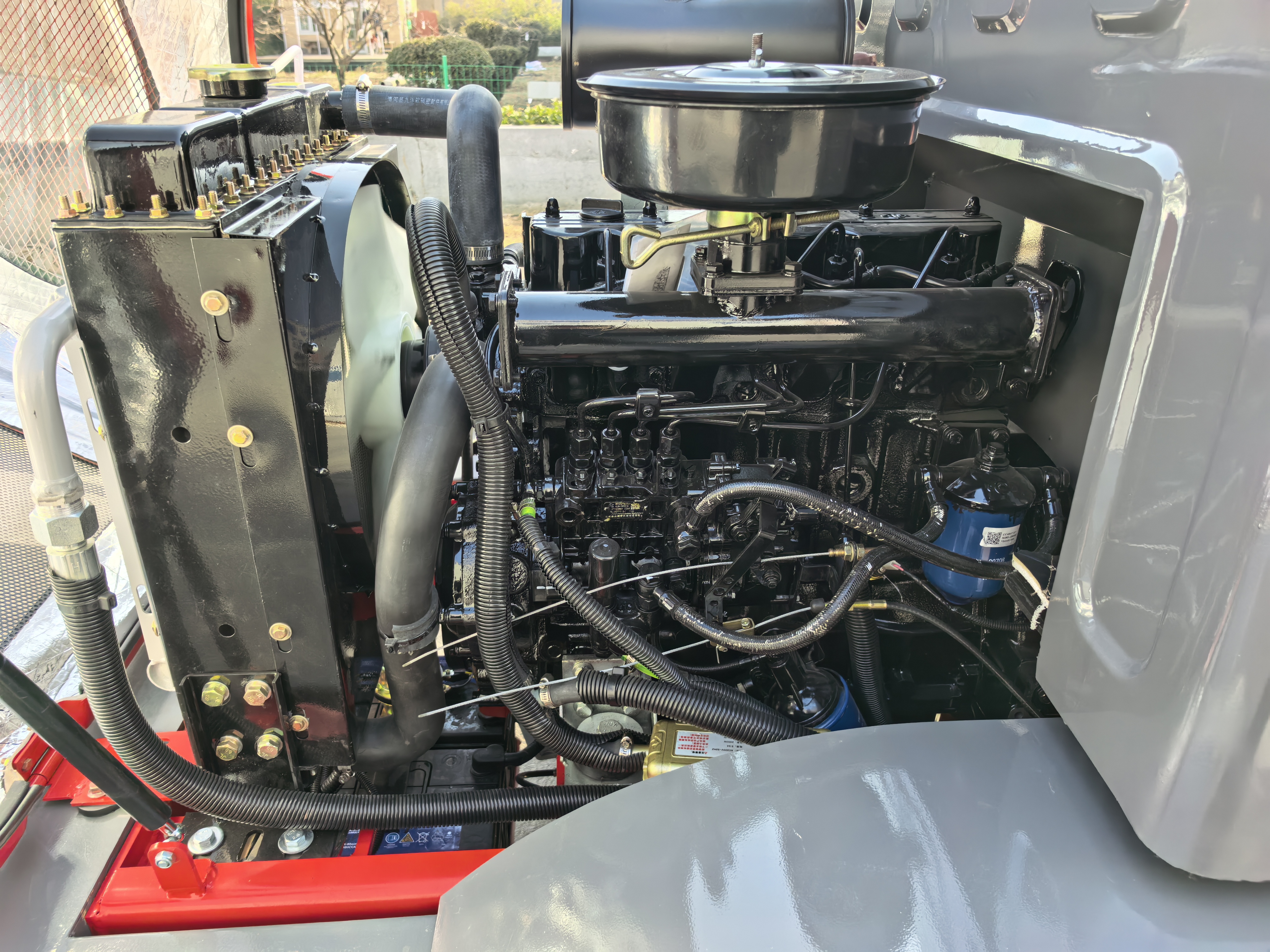 अनुकूलित ट्रांसमिशन सिस्टम: यह हाइड्रोलिक ट्रांसमिशन + चार पहिया ड्राइव को अपनाता है, जिसमें मजबूत कर्षण और उत्कृष्ट चढ़ाई क्षमता (≥25 °) होती है, जो जटिल कार्य स्थितियों के अनुकूल हो सकती है।